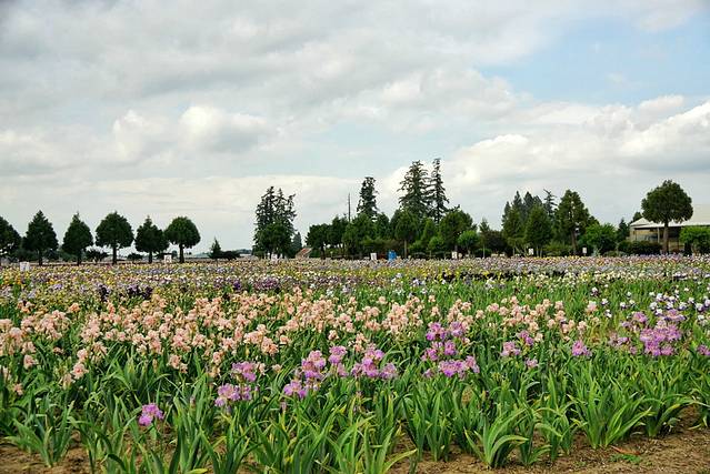 在去往Sutherlin(萨瑟林)的路上,大概是在尤金的附近,在高速公路上看到路旁的花海,马上开出高速去找,可是很多路都是私家小路,无法接近那些漂亮的花田。后来拐进了一条小土路(估计也是私人路),穿行于两旁的花海,真是美极了,可惜不敢停下来,因为怕是别人的私家路。直到开上一条大马路,我们才停在路边拍了张照。这些花田好像是可以去参观和买花的,我看到一些车子停在路边,有人捧着花走出来,也有人在花田里拍照,门口有价目表,不过看不懂,也因为要赶路,就没有进去。Sutherlin(萨瑟林)是最靠近Crater Lake National Park(火山湖公园)的小镇,我们想今天多走点路,明天能轻松一点。