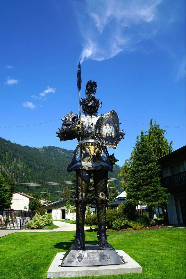 Tour-Thru Tree是一棵700岁的大树,曾经被火烧过形成了一个巨大的树洞,后来稍作加工成为了一个景点,卖点就是汽车可以从巨大的树洞穿过,更神奇的是这棵大树虽然有这么大一个洞,竟然还生机勃勃的一直活着。我们来到景点的时候已经下班了,挂出一个牌子让自觉放钱进去一个小盒子。一看要5美元门票,我有点犹豫,也许这里不单是一棵树,还有其他的东西看,现在天已经暗了,进去也待不了多长时间,万一没有游完,明天再来还要给多一次钱,不来又可惜了这个景点,所以就没有进去。出来不远的地方看到一个博物馆,也下班了,不过门口的巨大雕塑还真是前所未见,我站在那里就像小人国来的,朋友都说我不告诉她们我在画面中,她们真没看到。
