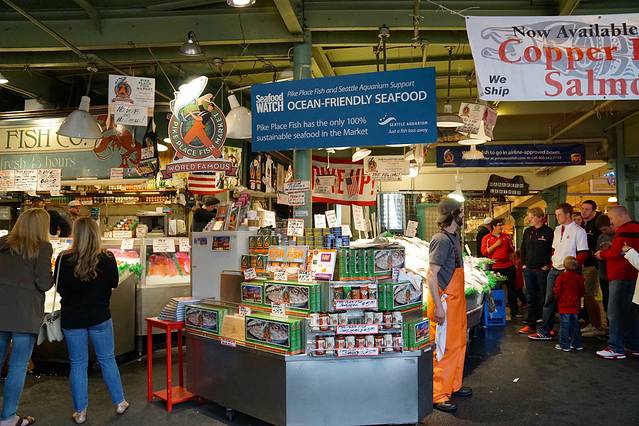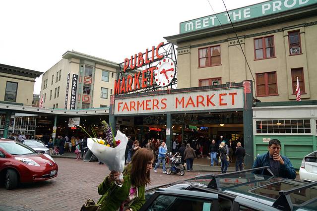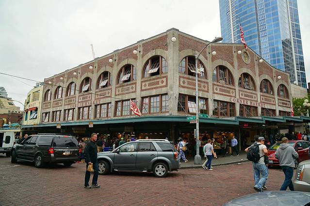 Pike Place Market 派克市场有抛鱼表演的门口(85 Pike St Seattle, WA 98101)