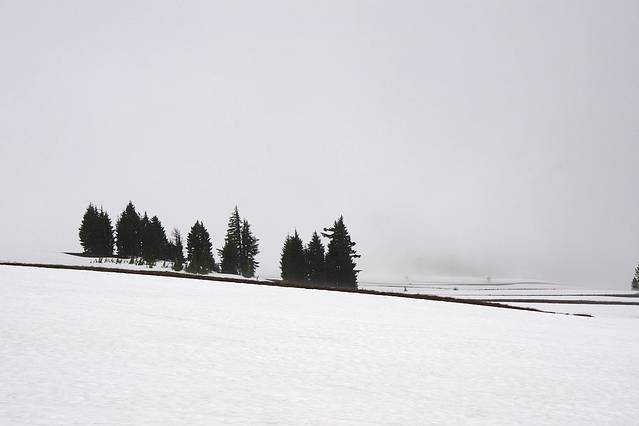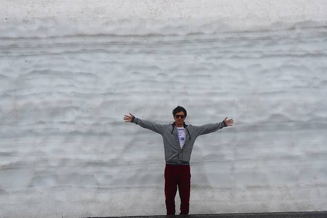 这条步道完全被积雪覆盖着,我们没有雪地靴,甚至都不是防水登山鞋,一边走一边不停的打滑。还好,步道旁边贴心的准备了绳子,多少能帮助保持一下平衡。我们就这样一路打着滑,一路尖叫着,一路看着四周更迭出现的美景,颤颤巍巍爬了几百米,鞋子全部湿掉了。越往山上去,积雪越厚,景色越美,但我们毫无装备,想到更困难的下山,我们不敢贸然再往山上去。下山果然是更艰难的,我好几次都差点滑倒,旁边的装备专业的下山者看到我关切的问是否还好,我真想跟他说——把你的登山杖借我用吧。