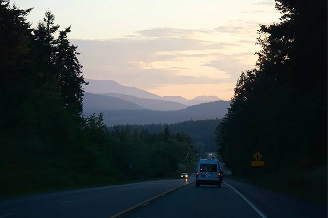 带着行李自驾的好处就是,弄湿了鞋子袜子可以上车换,哈哈。我们换好干爽的袜子鞋子,研究了一下今晚的去向,如果打算明天去奥林匹克公园的话,今天就不必回去西雅图住了,可以住在奥林匹亚或者101沿线的小镇,边走边看吧,天黑就找地方住。