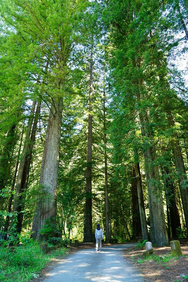 参观完old town ,从尤里卡沿着101公路开,就来到了Avenue of the Giants(巨人大道),这条路实际上就是和101公路平行的254公路,贯穿Humboldt Redwoods State Park。这里也是很多的徒步路线,我们去了Founders Grove、Rockefeller Loop Trail、Giant tree三个点,是去过的人推荐的难度系数不大、景色不错的几条徒步路线。
