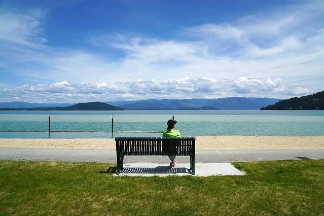 Lake Pend Oreille(庞多雷湖)是爱达荷州的第一大湖,有325平方公里,沿着湖边有一条旅游观光线路,Sandpoint(桑德波因特)周边是这个湖的核心景点,小镇本身就很有趣,很多的海鲜餐厅,尤其是靠近Sandpoint City Beach Park的河边餐厅,生意非常火爆。庞多雷湖盛产坎卢普斯虹鳟,不过自从我吃素以来,我们的旅行就再也不包含探寻美食这个项目了。