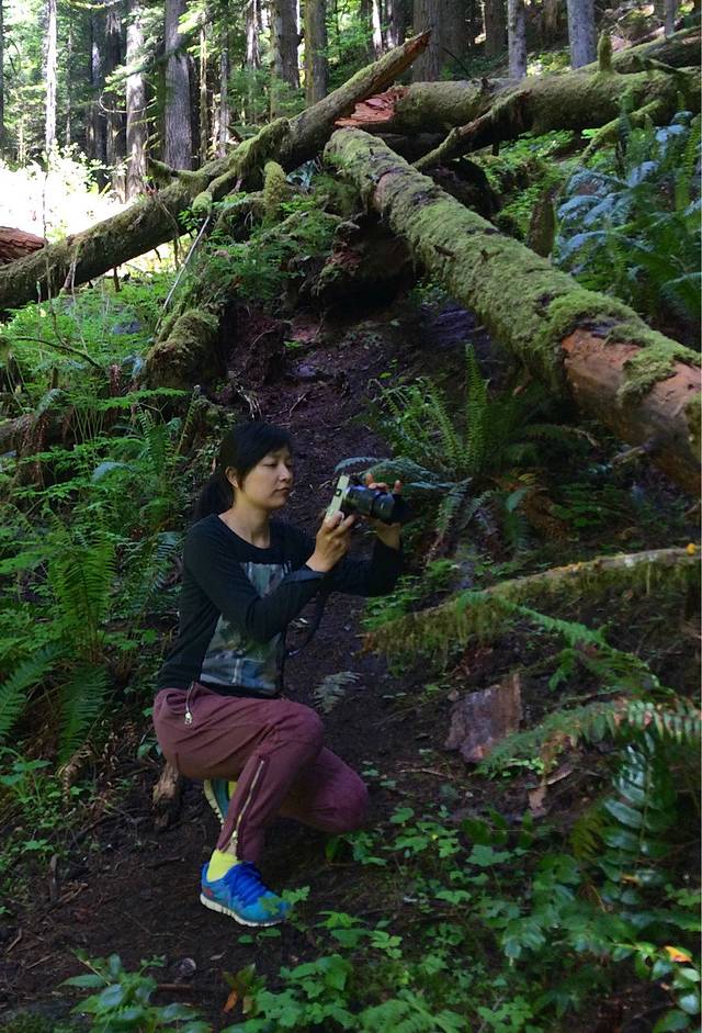 美国的自然环境真是不错,我们住在圣何塞附近的城市,家里的院子每天都有几只小松鼠光顾,有时还会有蜂鸟造访,其他的蝴蝶、小鸟就更多了,反倒是蚊子从没看到,苍蝇偶尔会有。到了国家公园,熊啊、鹿啊时不时的都会出现,各种昆虫、小动物特别多,我这个缺乏大自然生活经验的人,看到什么都好稀奇。我们在蕨类植物峡谷的溪流旁发现了一只鼻涕虫,是生活在红杉森林的Banana Slug,以苔藓为食。比我过去看到的棕色的可爱好多,金黄色的身体,还真是像一只小香蕉。