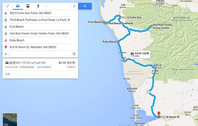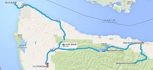 Point Angless 安吉利斯港酒店出发 →Olympic National Park(奥林匹克国家公园) → Forks 福克斯酒店入住(300公里)