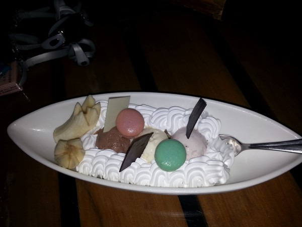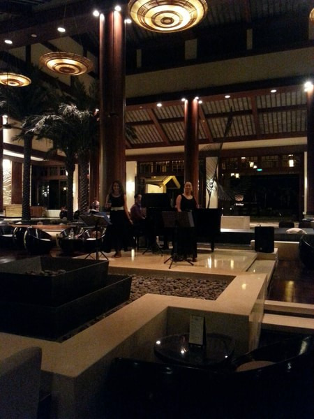 最后一晚,我和媳妇有了会泳后,来到希尔顿大厅,有3个菲律宾人专门在希尔顿驻唱,那个男的唱的太赞了,我点了杯龙舌兰,给媳妇点了杯拿铁,还点了个香蕉船,听着歌声,吹着海风,这叫神马?这就叫生活。另外还得赞一句,希尔顿大堂的服务生,服务是真不错,看我坐在那里点,她蹲在我旁边,拿着牌子,问我点什么,要什么酒精度的,真的很赞。
