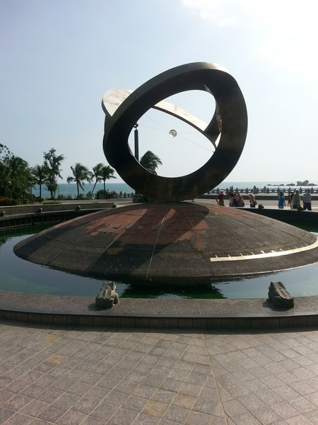 师傅来了,一家人,带好装备出发南山寺,父母60岁以上,买的半价票,其他在淘宝定的,140一位,30买的自助餐,另外进去还买了30的电瓶车。南山寺大家都说很多了,我这里没特别的,不过自助餐真是太难吃了,我没吃几口,老爸吃了不少,主要项目就是 丈母娘看南海观音,其他人,自由活动了,因为南山寺我来过3次了,就没再上去,老婆陪丈母娘抱佛脚去了,儿子疯了半天就睡着了,我们在素餐厅吃完饭,就坐着电瓶车一路浏览,下午2点多 ,出园,去天涯。