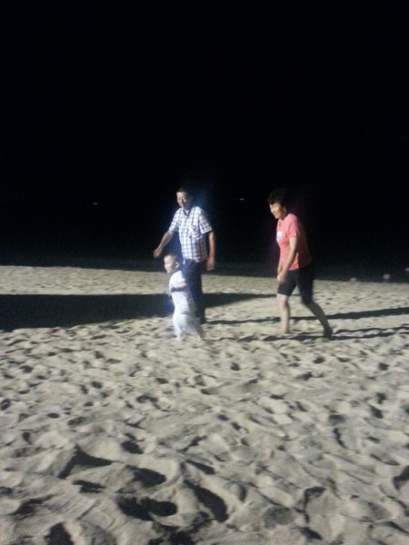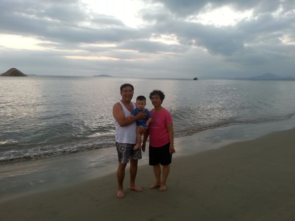晚上,陪父母去酒店的私家海滩玩,因为太晚了,看不清海,不过儿子在沙滩自由的奔跑,家人非常的开心,我躺在躺椅上,看着他们,心里真的非常开心,设计行程的疲劳在这一刻烟消云散,这就是我想要的,什么能比给他们带来快乐更让我高兴呢,我爱他们。