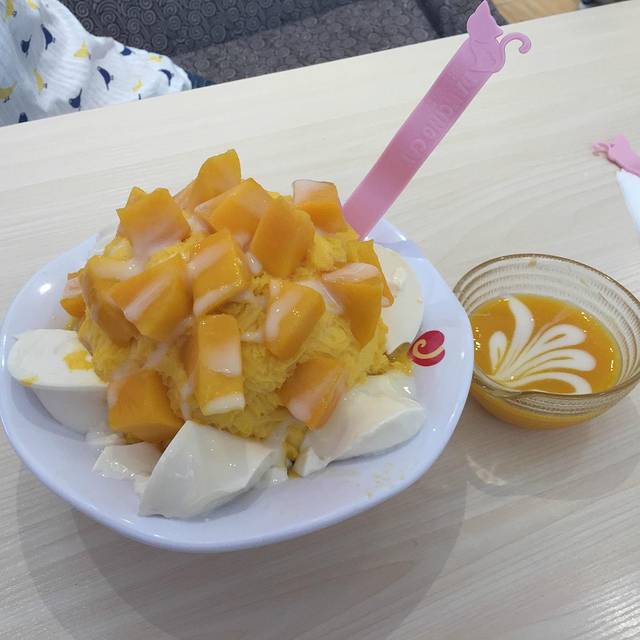推荐较多的赵小姐的店 里面有花茶点心 个人对此不感冒就随意转了转;张三疯的奶茶味道很好 甜而不腻;鱼丸很新鲜;最后那一朵芒果大爆炸是甜心凯特家的招牌 超喜欢 份量很足 跟闺密两人轻松光盘。