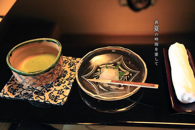 入住后,依照惯例会有仲居送来热毛巾和抹茶小点心。