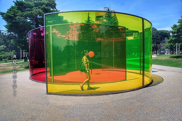 美术馆内部有很多展品,涵盖了摄影、美术、设计等等,有很多特别抽象的概念,加上又融入了日本的文化,大家看起来可能会有些费劲,不过每一个站台入口处都会有一份日文+英文的作品阐释,大家基本能对艺术品有个基本了解。但因为是流动展出,所以每次去看到的作品未必一样,内部也不允许拍照,我也就不多说了,大家有兴趣的话自己前往,慢慢欣赏就好。