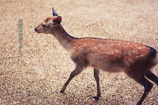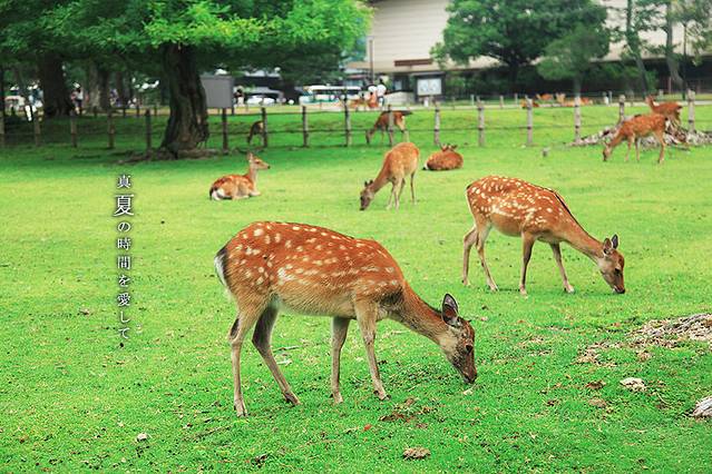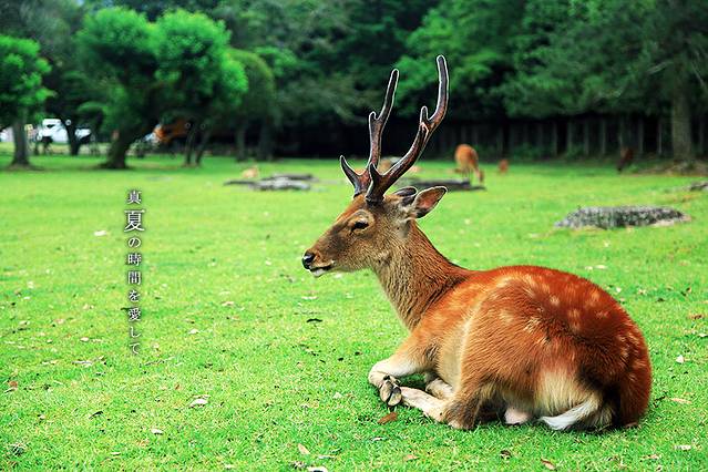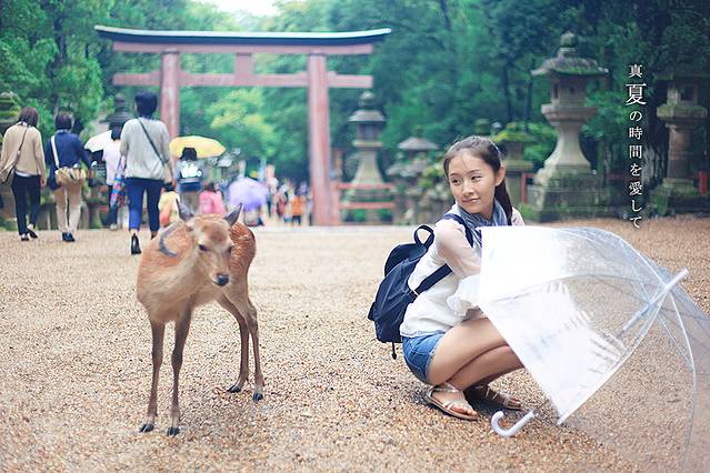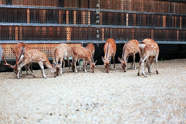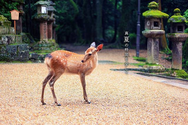 春日大社里供奉着的一个神明叫做武瓮槌命,据说藤原不比等在建造神社的时候看见武瓮槌命乘着鹿来到这个地方,所以就也把鹿当做了这里的神物,这样大家就不奇怪,为啥春日大社这里会有这么多的小鹿了吧!