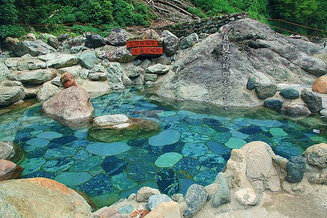当地的温泉富含铁元素,整个温泉水都呈现不同寻常的红色,日本三大名泉之一。