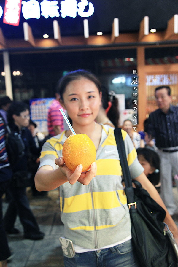 如果觉得买水果在路上吃不方便,还可以买一个被打磨成浆加了碎冰的橙子,用吸管就能把果肉吃下去啦,300日元一个感觉好贵……