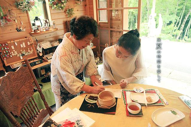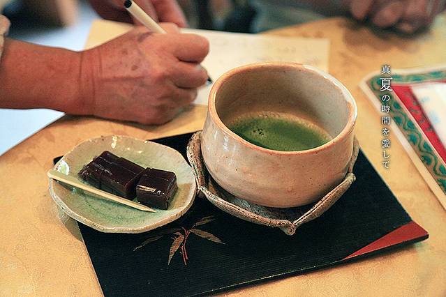 我们只是来吃几块特别便宜的饭团而已,奶奶拿出各种东西来招待我们,还真是有点过意不去呢。看了看贴在墙上的菜单,好像有抹茶卖,可惜只认得出抹茶两个字,后面的东西都认不得,硬着头皮点了这份未知的食物,心想无论如何总会跟抹茶有关系吧。