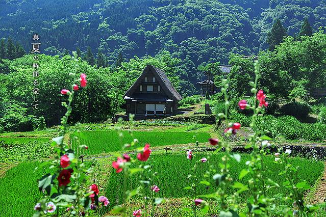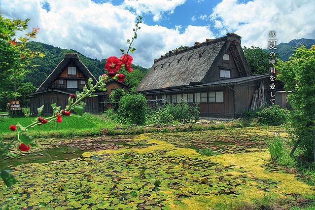 冬季的白川乡,白雪皑皑,屋顶会顶着厚厚的雪,就像童话中的小房子。夏天则满山遍野的绿色,鲜花盛开,也是极美的。