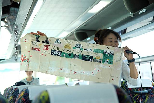 第二天一早,吃完丰盛的自助早餐,我们便去浓飞巴士车站买票,跟团前往白川乡。车上会有日语和英语导游向大家介绍白川乡和五箇山的文化背景,图文并茂哦!日本人坐在车的前半截,外国人都在后半截,所以两个导游说话不会互相影响。