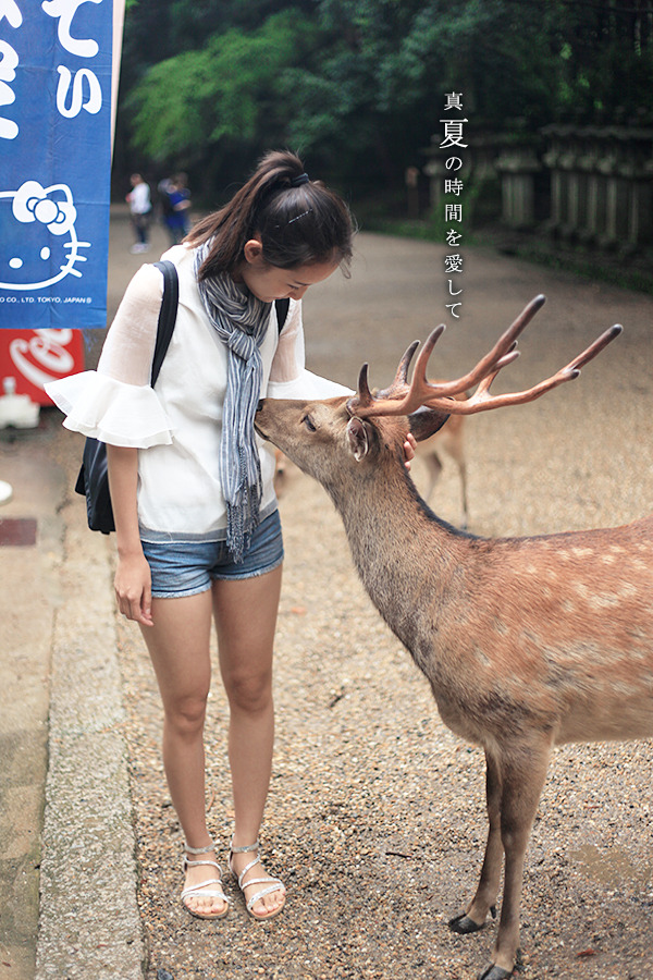 沿着幽深小路一直走,竟还真的走到了春日大社的门口。这里的小鹿就变得非常活泼,看起来像是把人当好朋友一样,时时刻刻都在关注着你的一举一动,感觉好温馨的样子!然而它们如此热情地看着我只关心一件事就是我手里有没有饼干,最后知道真相的我眼泪掉下来……