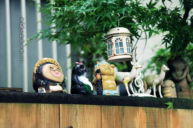 很多人家门口都有这样的小装饰,左一的小狸猫在日本很多地方都能看见,不过这个是比较Q的版本。后面还能看到很多,到时候我再慢慢跟你们道来我所知道的,关于日本狸猫的故事!