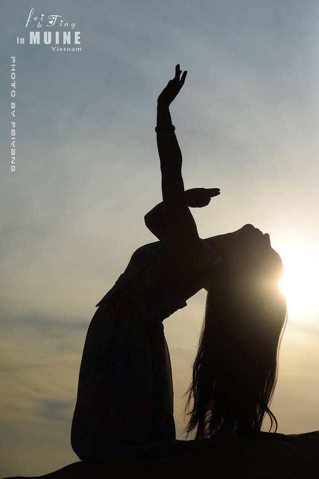 前往白沙丘的路简直像开过军用坦克,高低不平,最强的一次颠簸脑袋直接撞上车顶,黎明时分看到星星在眼前打转也是醉了。有些冷,穿了长裙和长袖衬衣。摸黑在沙丘外围吃早餐,一碗越南粉,加牛肉,不爱吃香叶可以说明,店主会贴心地把粉和香叶分盘放置。吃不掉的都喂了附近的小狗狗。第一波旅行团游客过去后,我们也脱鞋爬上沙丘。细软的沙子在清晨是凉的,日出后就急速升温。白沙丘之所以得名,是因为它颜色比普通黄沙浅,显白,只有很远处的稀疏灌木是棕褐色。走在高低起伏的沙脊上人像是小黑点。有孩子在玩滑沙,笑声如铃。也有举着自拍杆的思密达们喊“欧巴”。太阳升起后,沙丘上的剪影让人有种身在大漠的错觉。实际上白沙丘地方并不大。旁边的荷塘里还盛开着荷花,提醒我们从寒风四起的冬季回忆里醒来,好好享受到灿烂千阳的美奈之夏。