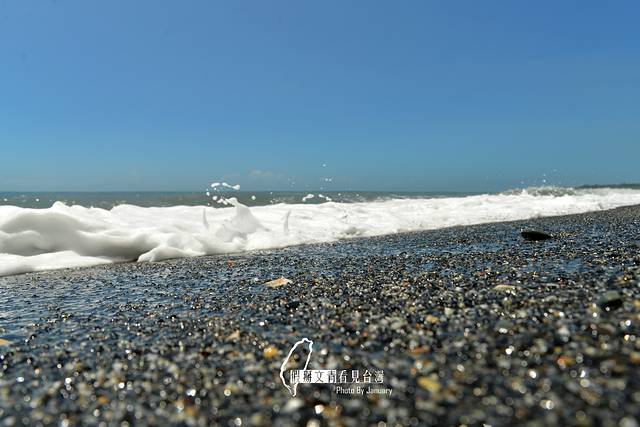 無邊的蔚藍海域銜接島嶼的是一片礫石灘,石頭在海浪的激蕩下光滑無比。