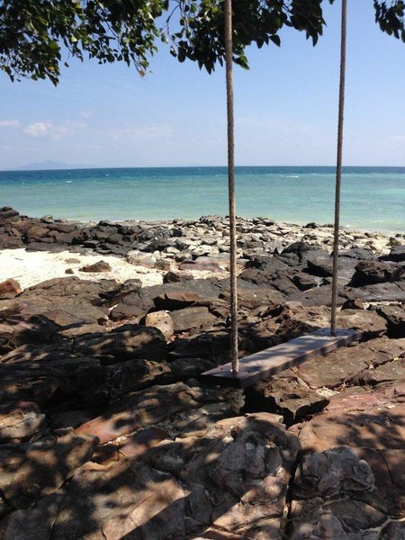 休息了一下,吃了点带来的泡面,忍不住赶紧出去溜溜了,海边有一个超有感觉的秋千哦。这里的面粉沙很干净,水质也不错,但是岸边还是不够清澈。