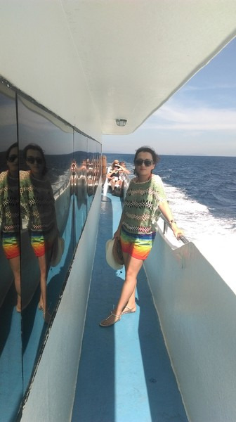 凹一会造型导游过来说饭前可以跟船去好一点的地方浮潜,也可以选择在沙滩上玩,我当然是去浮潜了,啦啦啦这可是我的首浮那,兴奋兴奋。