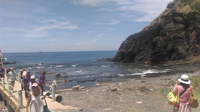 趁着停船的时候,成功和一对同样去北部的情侣约好,下午一起包船出海。等乘客都下好了船会继续往北部开,大概半个小时到达,码头这里虽然都是礁石但是风景超美。
