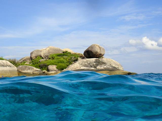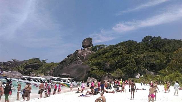 快艇坐了一个半小时大概10点多才到达斯米兰的8号岛。就是有风帆石的那个。用姜先生的话说,这里有像泳池一样的海水,即使在岸边打到沙滩上的水都是清澈的。只是人真的超级多超级多超级多。还好几乎都是一日游的。