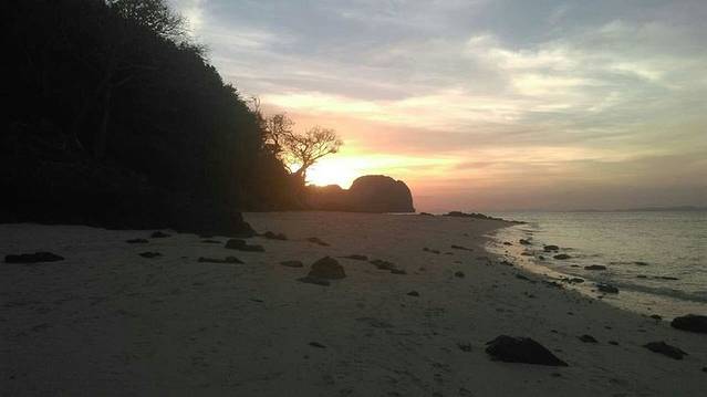 上船后又向着竹子岛前进,竹子岛上有很长很美的沙滩真正的面粉沙哦。当时那里只有另外一条船,岛上只有一对情侣在拍照,私人海滩啊有木有,我们在沙滩上休息等着看日落。