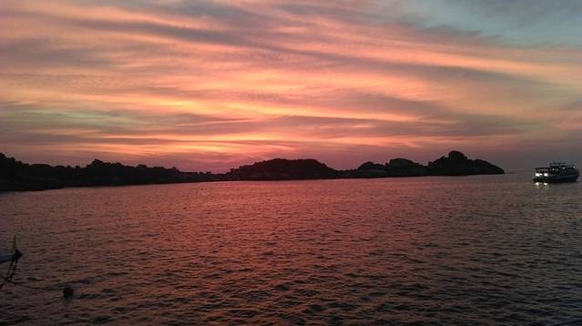 第二天早上云很多没有看到日出。房间的气味实在很重,睡的不好总是会醒。等到住在岛上的团友上船,看到他们一个个精神饱满神采飞扬,而自己却无精打采蓬头垢面。唉,真是后悔啊!想当初我预定的时候,正好赶上优惠,空调小屋才880/人。我却为了海盗船,而定了1050的船宿。真是自作孽。
