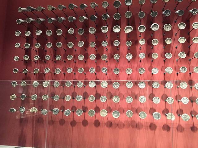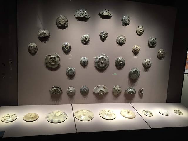有人知道这个是什么吗?--“瓦当”。 六朝的“人面瓦当”是这个时候兴起,以前只有兽面和莲花图案,最下面一排就是人面瓦当了,所以六朝博物馆也以这个图案作为logo