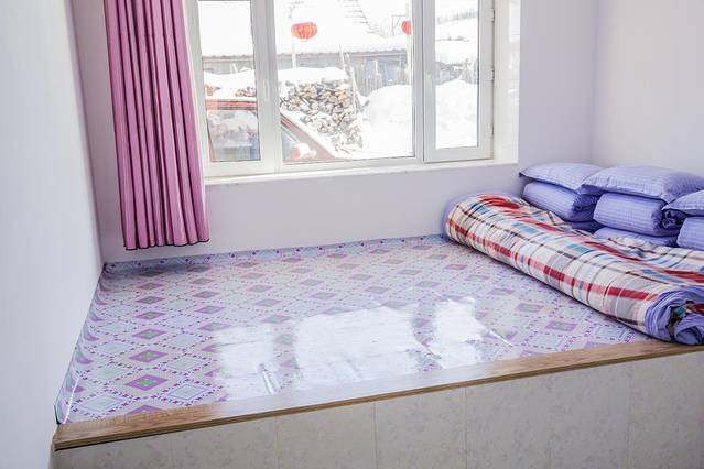 客栈为房客提供的都是传统的东北火炕,对于我这个南方长大的孩子,倒是颇有几分新鲜,我们因为是两个人,就定了恋人房间,刚一进房间,我最喜欢的浅蓝色颜色的床单,就整整齐齐地码在床上,窗明几净,那种简单质朴的感觉油然而生。