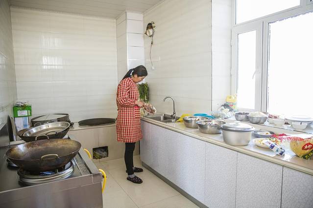 偷拍的厨娘在厨房忙活的场景,好干净,餐具排放的井然有序。