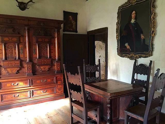 餐厅椅子上还铺了厚厚的兽皮