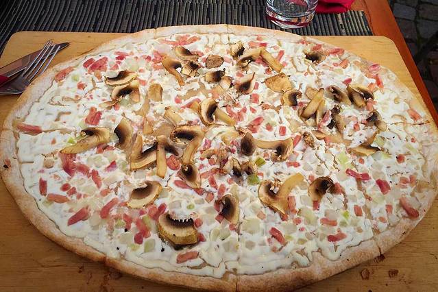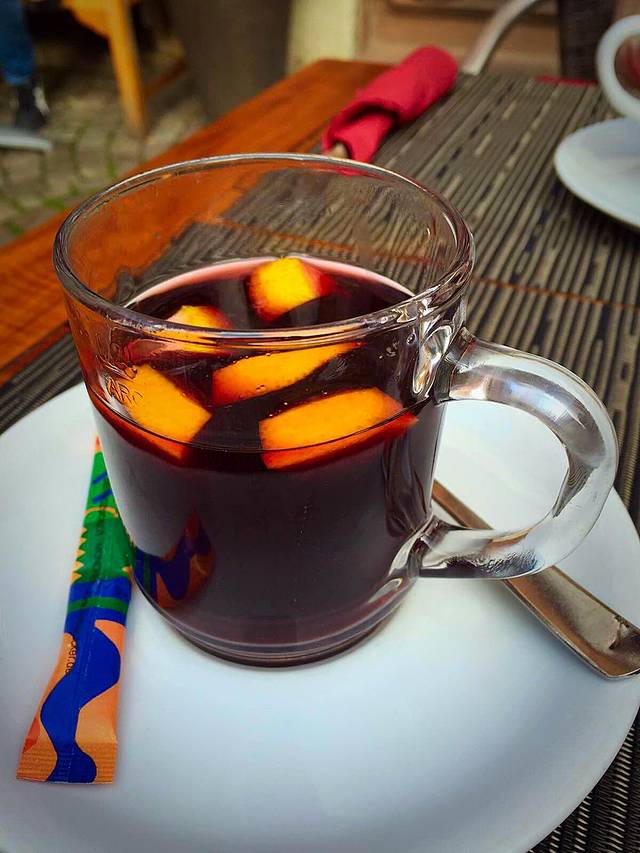 骑车累了就坐下来,喝一杯热葡萄酒,再要一份当地的薄饼。