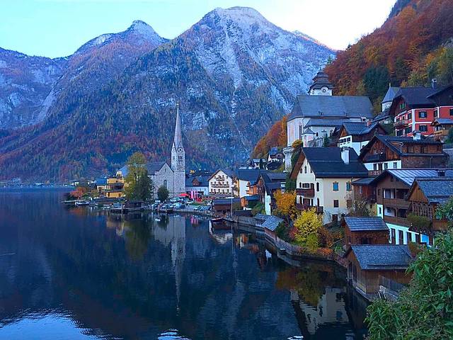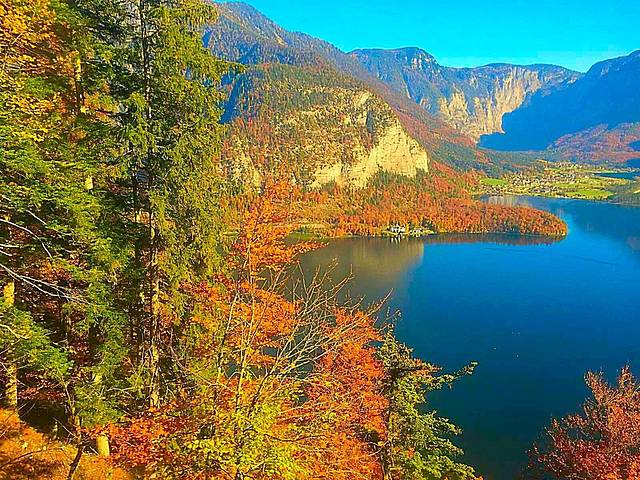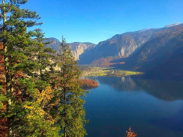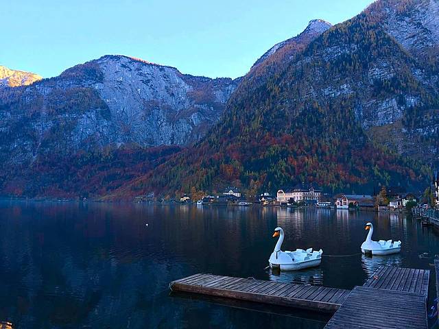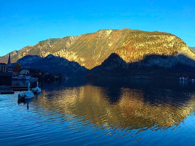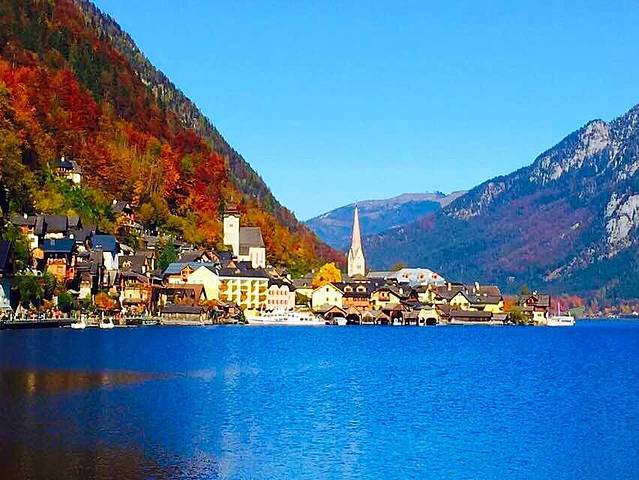 哈尔施塔特湖位于上奥地利州萨尔茨卡默古特度假区,是14个湖泊中最富灵性的观光胜地。秋日红树黄叶漫山遍野,天鹅水鸭浮游觅食,还有岸边花团锦蔟的咖啡屋,都成为最靓丽的一道风景线。