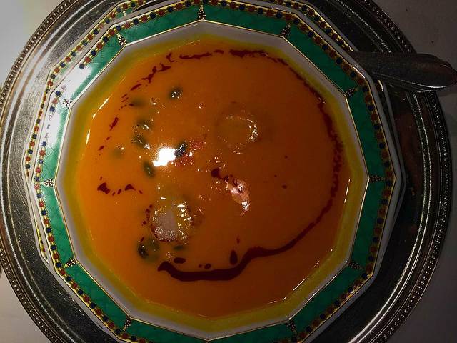 各自点的头道,鹅肝也是当地特产,南瓜汤里放南瓜子,有意思!