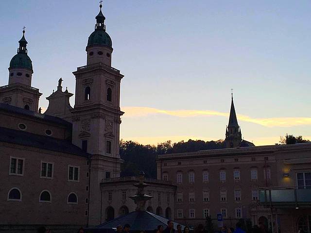 老城很小,主教广场、莫扎特广场都挨着。那个著名的喷泉—“音乐之声”取景地,由于天气渐冷,这个季节已经都包上了,实在看不出什么东西。