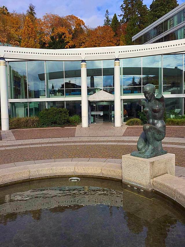巴登在德语中是洗澡的意思,巴登巴登顾名思义:洗澡洗澡。到这座城市来旅行的游客,大部分是冲着温泉来的。而巴登有两个最著名的温泉浴场:卡拉卡拉浴场和弗里德里希浴场。前者包括室内和室外浴池,在这里可以裸身也可以穿泳衣;后者只有室内浴池,而且只能裸身洗浴。马克吐温曾在这里泡过温泉,并留下一个名句,“在弗里德里希浴池泡温泉,10分钟你会忘记时间,20分钟你会忘记世界”。