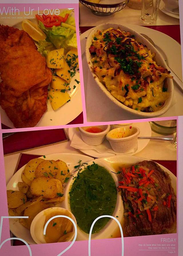 在网上搜到一家评分不错的餐厅,但是德文菜单看不懂,菜端上来,服务员问“这谁的?”没人作答…再问“这又是谁的?”还是面面相觑……一看就是瞎点的,连自己的菜长什么样都不知道。不过,餐厅不错,每样菜都挺好吃