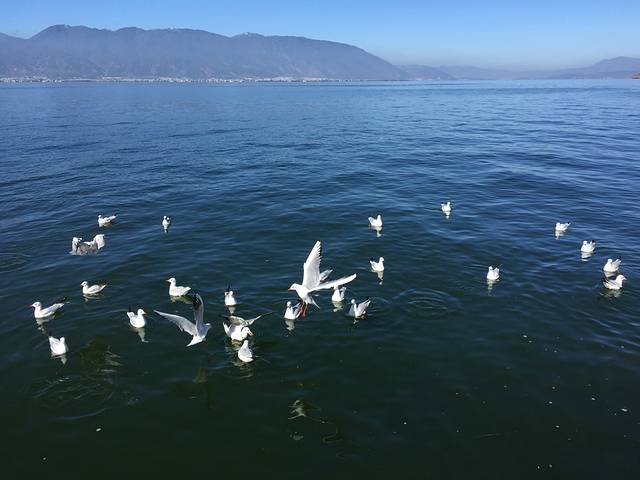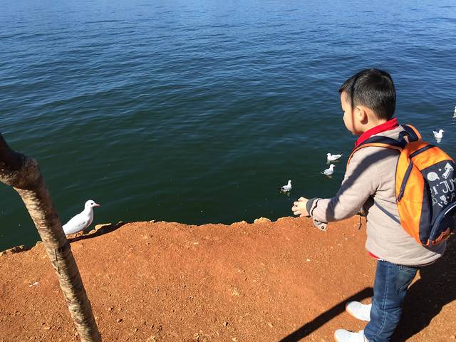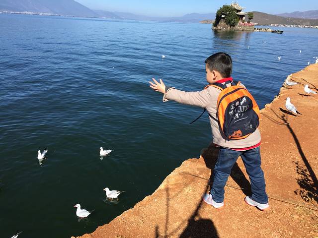 某娃开心得不得了,海鸥也不怕人,有专门卖投食的老嬷嬷。蓝天白云,苍山洱海,海鸥飞舞,处处透着宁静平和,所谓人与自然和谐相处不过如此吧。