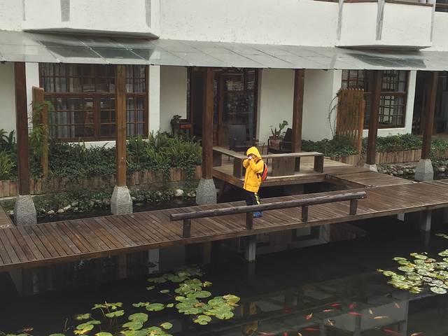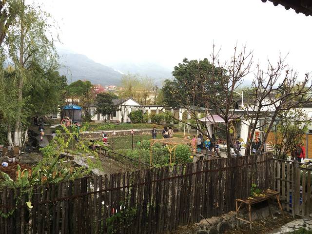 飞机很准时,下午3点45抵达位于下关的大理机场,但飞行的最后十几分钟,颠簸得十分厉害,娃紧张地紧紧抓着我的手。后来想想,那情景应该就是下关风在向我们SAY HI吧。。。落地后等了大约十分钟,朋友就来接我们了。先去了朋友位于古城附近山水间的家,小休一会等朋友上小学一年纪的女儿回来后就带我们去找不到的猫猫果儿客栈CHECK IN。 放好行李后,在小朋友们的强烈要求下,我们秘密潜入一墙之隔的猫猫果儿幼儿园。完全有别于城市高楼林立包围下的校园,呈现在我们眼前的是一派自然风光,小动物,树屋,蹦床,秋千。。。更象一个小公园。。。两个小朋友逗兔弄猫,上树屋玩樊爬,特别是我家那娃没见过这配置的幼儿园,玩得不亦乐乎都不愿离开了啊。 晚餐在客栈附近的风味庄,白族菜系,我爱那个铜锅饭,朋友和她的女儿喜欢那个糯米小卷,有碗汤叫水性杨花,最后有一碟水果是啥估计很多人猜不到。 席间两小东西翻脸了,我和发小相对而笑。和自己认识几十年的发小一起看着我们的孩子打打闹闹,感觉很奇妙。很期待在大理的每一天。
