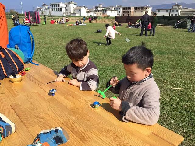 谁都不认识,好不容易找到一个小朋友一起玩。不过,到分手时都还不知道人家叫啥名字。。。