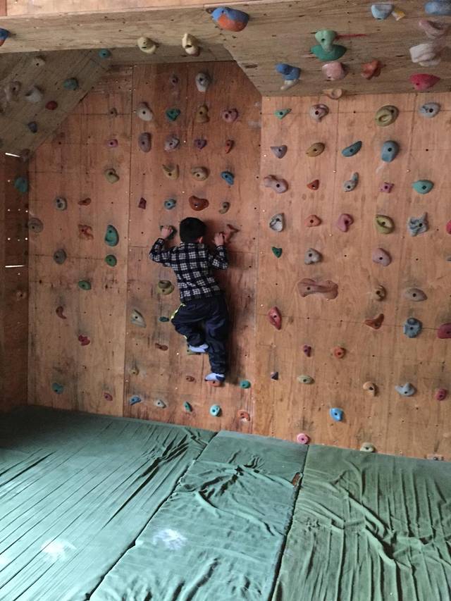 午餐PIZZA店的攀岩场地,据说老板是一对夫妻,LG是美国人,LP是湖南妹子。开了这个店,还自己接很多户外的团队活动。还据说这美国人特实诚,带团费用收多了硬要退回去;宁可在米国买贵的正版碟也绝不在中国听盗版,称这是对这些音乐的人支持。你觉得他太傻吧,其实他是令人尊敬的。