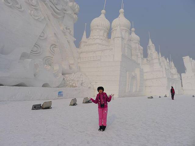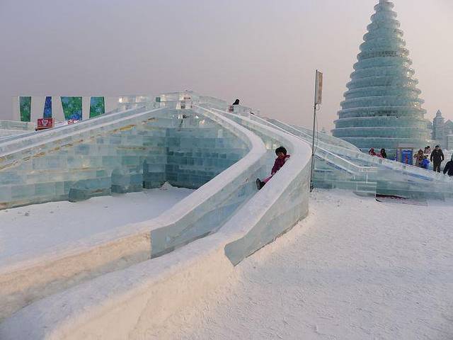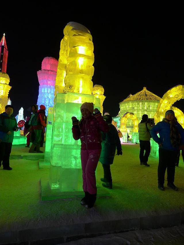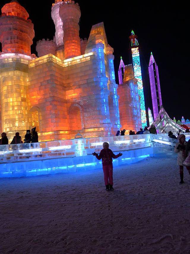 这里是冰的世界 这里是雪的海洋。冰雪大世界坐落在美丽的松花江上,晚上的时候灯火辉煌,各式各样的冰雕雪雕让人流连忘返,也不禁叹息设计师们精巧的设计。建议多穿点,因为都是冰灯气温比较低。