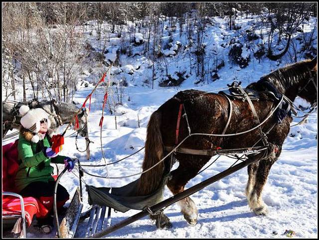 马拉爬犁 这个也是东北的特色,坐着很舒服,明天穿越的时候一般都会坐的,一个是体验,在一个是节省体力 要不可能穿越结束以后没有力气游玩雪乡了
