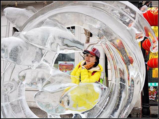 中央大街 各种创意型冰雕随处可见 无一不昭示着你来到了冰城