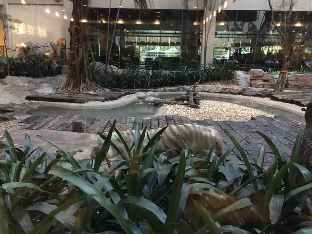 因为在网上事先看了介绍,所以一大早就起来然后去长隆酒店的白虎餐厅用自助早餐,因为去的早,所以坐在了白虎园的玻璃旁边,近距离的享受了边吃饭,边看白虎的待遇。因为靠窗的座位不多,来晚了就没有了,所以一定要赶早。