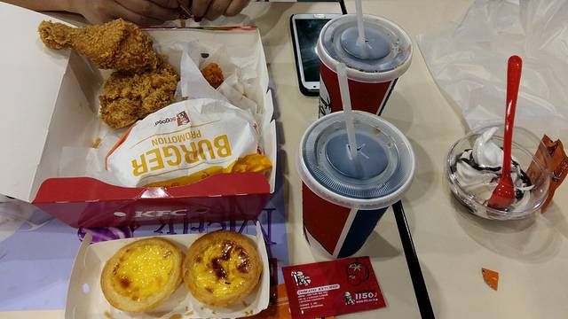 泰国的饭菜真心不和胃口,网上推荐的炒饭、海鲜,没有觉得哪个菜是好吃的。都带甜味,又酸又甜,可能我是湖南人,喜欢吃辣的,好怀念老干妈和米粉啊~~所以出国必带老干妈,下次一定注意。在泰国吃得最好的一次,居然是KFC,又好吃,又便宜,点了一大堆,折合人民币才40多,很划算,关键是,不用吃那些酸酸甜甜的东西,谢天谢地。另外还看到了DQ,确实便宜,一个甜筒才10B,折合人民币2块钱不到。